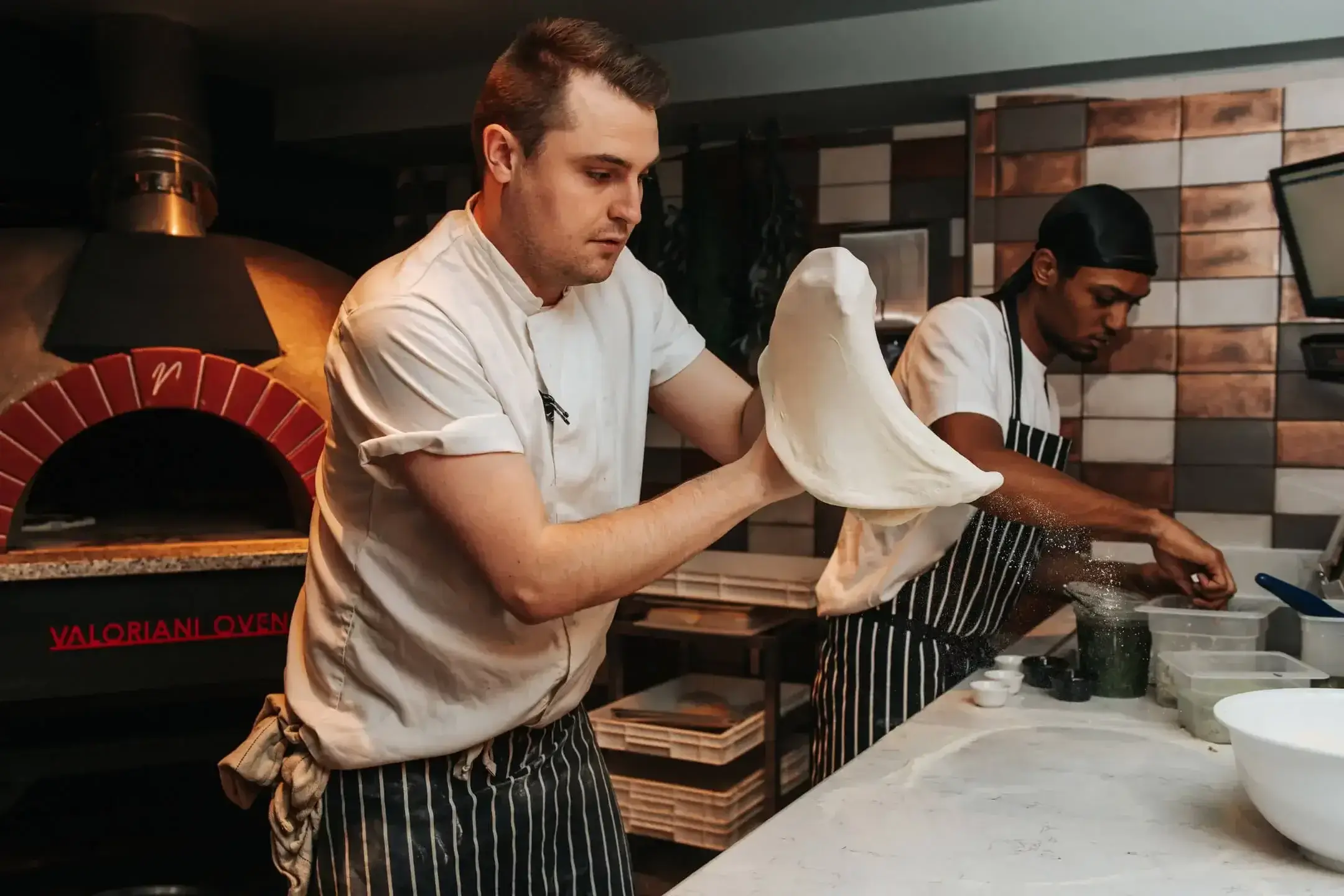 The Main Event: our pizzaiolo's will teach you to ball dough and pin your own 10" sourdough pizza to enjoy